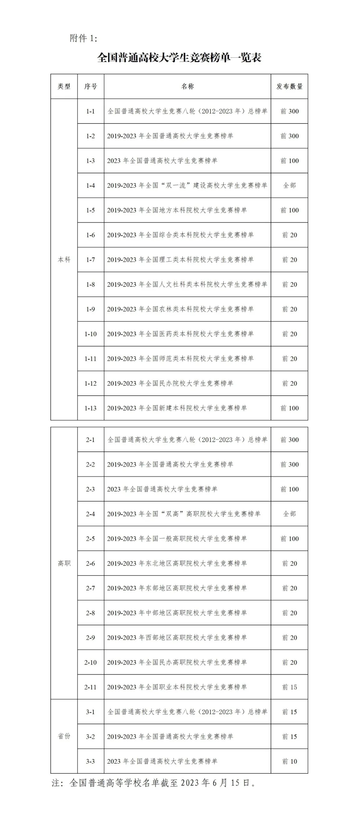 1.全国普通高校老员工竞赛榜单一览表