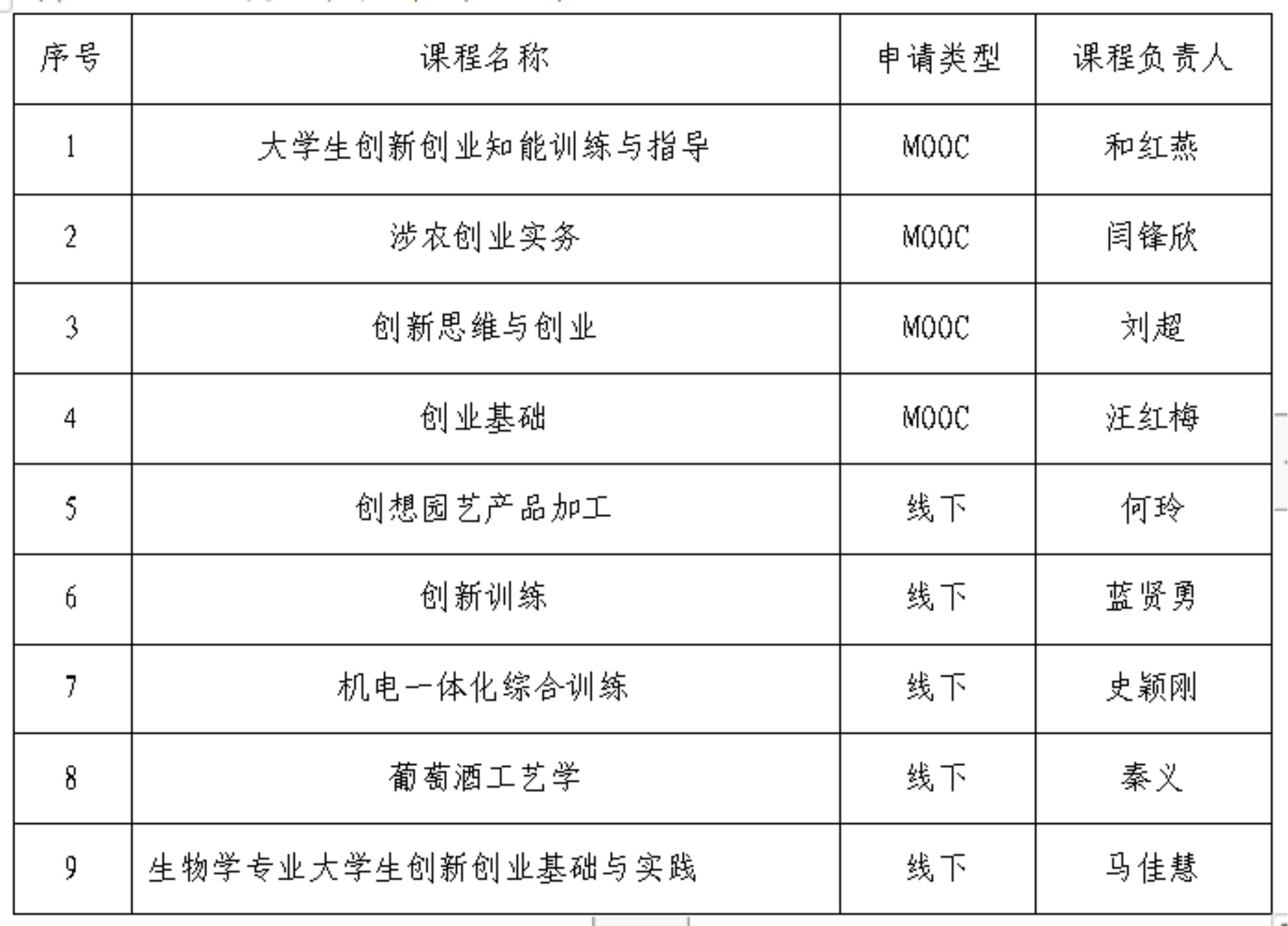 《关于公布陕西高校创新创业教育课程名单的通知》(陕教高 办〔2019〕13 号)公布的创新创业教育课程(附件1),公司课程名单如下: