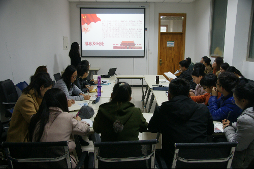 会议首先由包明和张滕同志做了“增强四个意识,树立四个自信,做合格党员”的报告。包明同志结合自身实践深刻解读了“四个自信”,就为什么要坚持“四个自信”及如何坚持“四个自信”进行了总结;张腾同志系统阐述了“四个意识”的意义和具体内涵,在她们的带领下,在场的所有人再次深入学习了党的十九大精神。