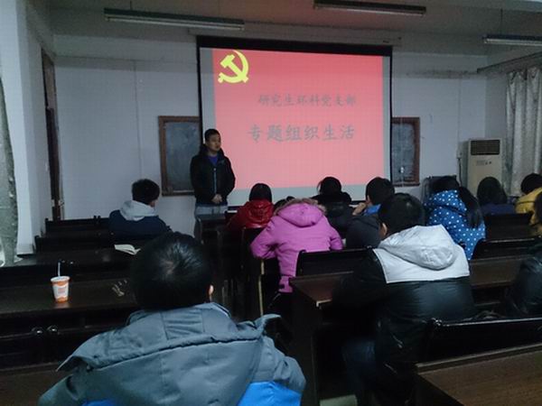 12月11日晚,研究生环科党支部在公司第二会议室开展专题组织生会。会议由支书黄琳琦主持,会议主要内容是党员批评与自我批评,学习十八届三中全会公报。
