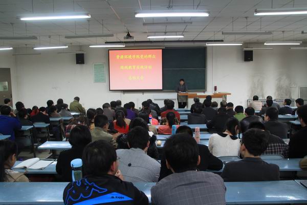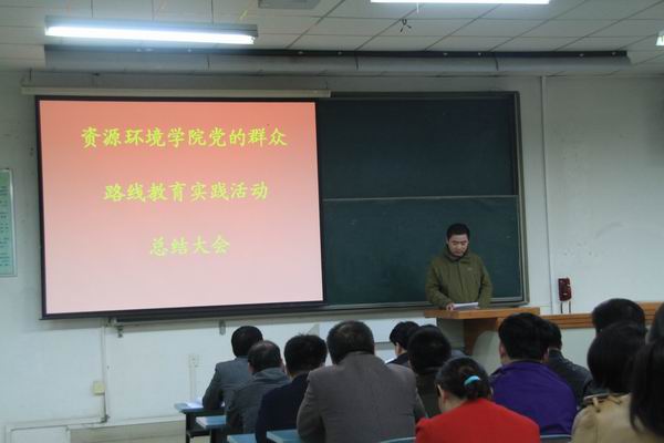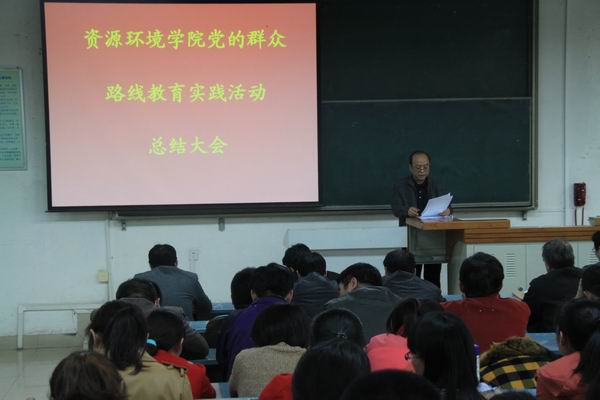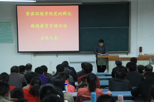 3月17日下午在南校区2号教学楼台6教室,资环公司召开了党的群众路线教育实践活动总结大会。出席大会的有公司教育实践活动第三督导组组长杨玉科同志、副组长陈遇春同志、联络员王家武同志;参加大会的有公司领导班子全体成员、党委委员、院工会负责人、党支部书记、教职工党员、教授、民主党派负责人、系(所、室)主任、科级以上干部、引进人才和非党员教职工代表、院团工委、员工会、研究生会和员工代表等104人。薛建鹏副书记主持会议。