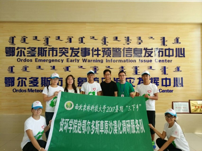 身在草原,自觉应为草原做贡献。在公司组织“青春中国梦 献礼十九大”暑期三下乡活动中,西农资环公司赴鄂尔多斯草原草草场退化调研服务队承担起探寻草场退化原因及宣传防治措施的任务,用自己的力量守护草原的一片绿色。两天时间里,西农学子走进鄂尔多斯气象局和杭锦旗气象局进行气候数据分析和询问相关人员。