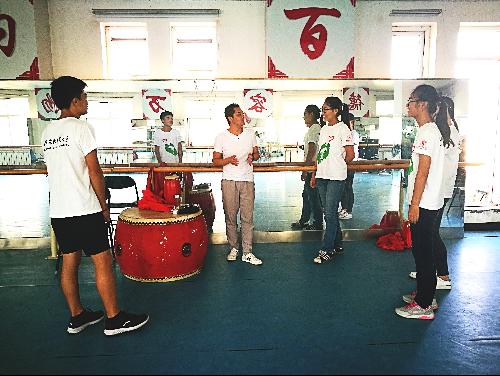 刘国进老师带领队员们学习腰鼓