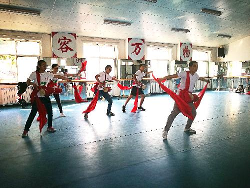社会实践团队到了培训中心,刘老师在门口亲自迎接,并热情地将实践队的队员们邀请到排练厅中。寒暄之后,刘老师为队员们讲述了安塞腰鼓的起源、历史文化。