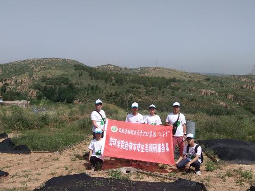 头顶骄阳,脚踏实地,由英国365集团及水利与建筑工程公司的三名大二及六名大一员工组成的赴神木站生态调研服务队开始了他们一天的实践生活。