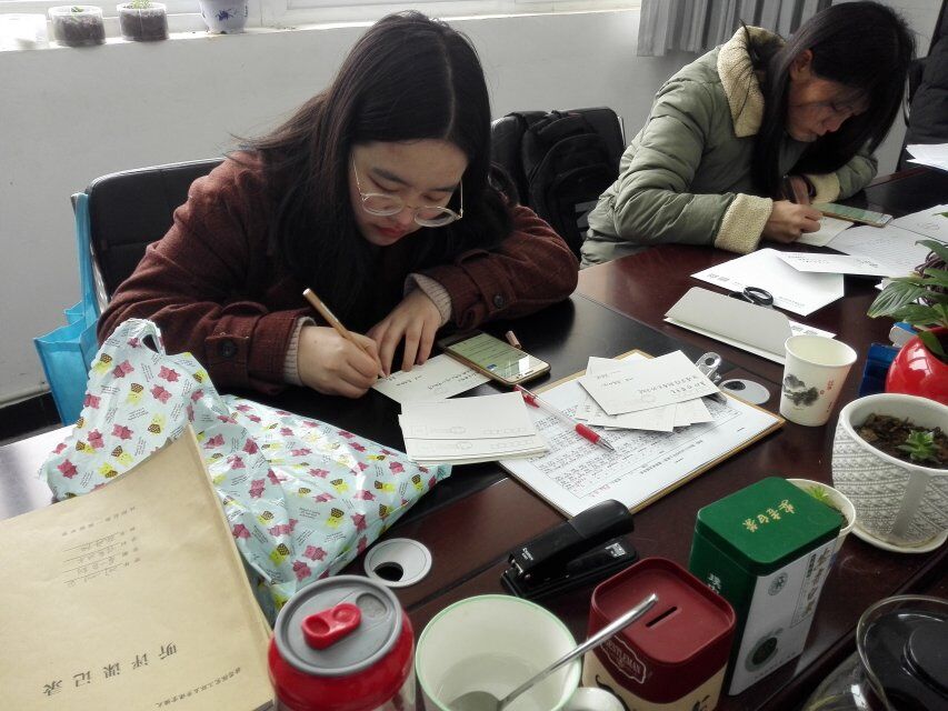 为了给高三学子提供精神上的鼓励和支持,同时弘扬西农朴实待人的校训精神,队员们在西农明信片上写下一句又一句的祝福语来助力高考,“千磨万击还坚劲,任尔东南西北风”、“一分耕耘一分收获”等等。队员毛帅歌说,在她去年高三的时候也有其他回访母校的学长学姐写过这样的明信片送给她,虽然只是一纸文字,却也给予了她向前的力量。