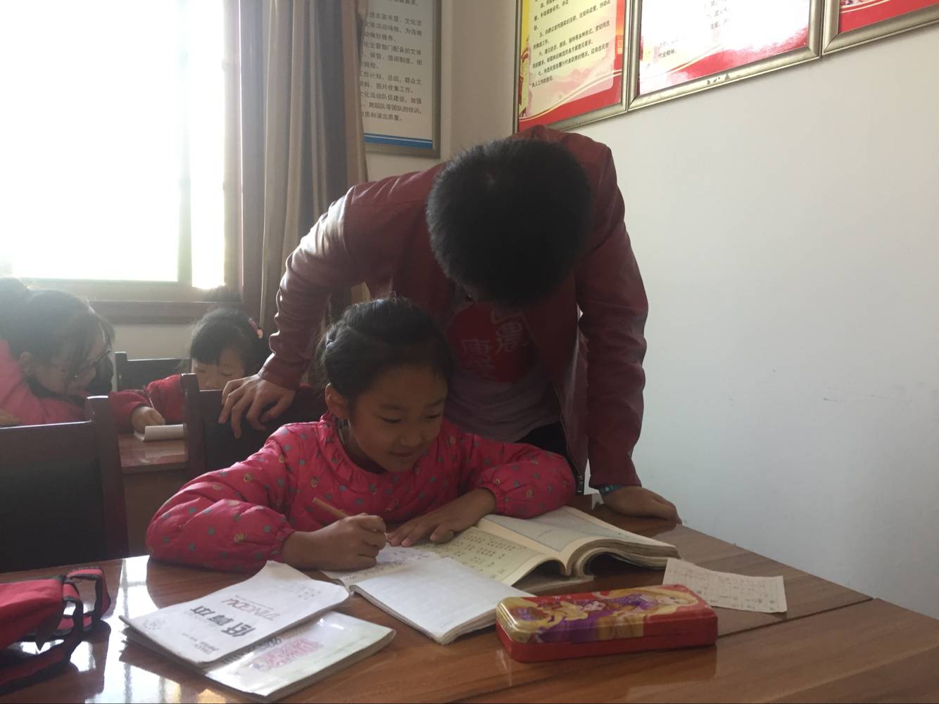 上午8点半小分队乘坐公交车前往了郭管村,郭管村的村干部接待了小分队,并把留守儿童关爱服务中心作为讲课的教室。小朋友大多数年龄较小、天性爱玩,学习对于他们来说是一个复杂的过程。在支教的过程中小分队采取了一对一的教学方式,极具耐心地给小朋友讲解拼音,一步步引导小朋友去思考。郭子萱小朋友才读二年级,乘法表对她来说都比较困难,一个简单的乘法,可能也要想很久。在辅导她时,小分队成员李佳欣同学耐心地给她讲解乘法口诀,用各种形象的比喻去引导她思考,最后成功地辅导她写完作业。李云飞同学感慨道“在支教过程中我们注意到,小朋友大多数都是奶奶在带,在农村这是一种普遍的现象,这也更加激起了我们的责任心,作为老员工我们应该有这样的责任感。我们已经坚持了半年时间了,基本上周末有时间我们都会去支教,我们可以感觉到,家长们十分地感激我们,这是对我们支教工作极大的肯定,觉得自己在做一件特别有意义的事情”。
