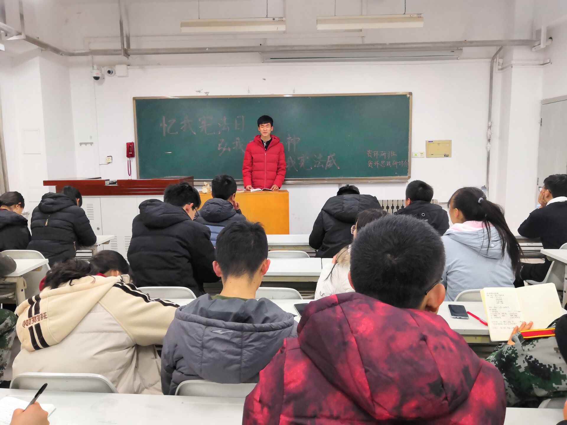 12月4日晚8点,资环公司思政类社团 “学习宪法知识,弘扬宪法精神”的学习研讨会在西农北校八号教学楼举行。资环公司员工骨干思政研讨社、习近平新时代中国特色社会主义思想研习社两社全体成员参与了本次研讨会。