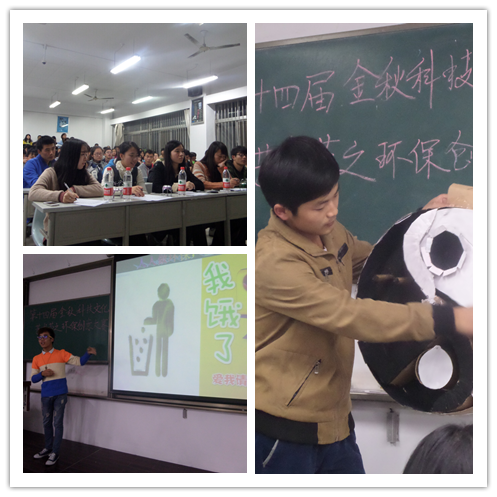 11月7日晚,第十四届金秋科技文化艺术节“环保创意大赛”复赛在北校区8号楼举行,来自各公司50多名参赛选手带着他们精心制作的作品参加比赛。