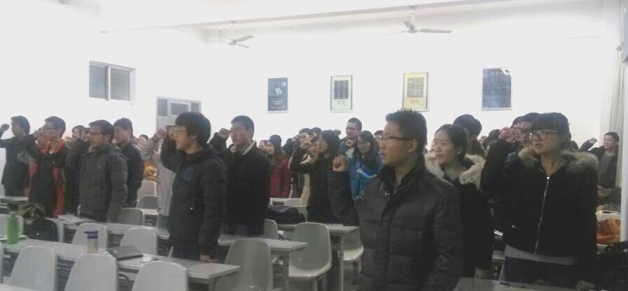 2015年1月4日上午,资环公司在南校区3405教室举行新党员入党宣誓仪式。资环公司主管党建相关老师,研究生、本科生新老党员近60人参加了此次宣誓仪式,仪式由王衡同志主持。