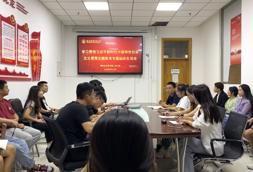 9月13日晚,研究生农资专硕二党支部在公司608会议室召开学习贯彻习近平新时代中国特色社会主义思想主题教育专题组织生活会,会议由支部书记朱陇强主持。