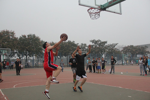 随着哨声的开始,闫德忠书记代领的职工队率先拿球,传球,运球,投篮,一粒精准的三分球让职工队率先得分。随后,员工联队也不甘示弱,奋勇直追。赛场上,老师和员工们都展现了拼搏的体育精神,充分享受着运动带来的快乐。参赛的员工每个人都是各班级篮球队的精英,在首节比赛中,员工代表队以微弱的优势领先。第二节开始,老师率先发力,接连命中投篮,比赛进入白热化阶段。场边拉拉队也是热情高涨、呐喊助威。第三节的时候两队不分上下,最精彩的最后一节,两队都不甘示弱,互不相让,经过激烈的角逐,员工队以64:58的比分险胜教师队,赢得了比赛。虽然老师输掉了比赛,但是他们表示:“看到员工的成长是我们最开心的事情,希望他们毕业以后可以保持住如今的活力和自信去开创自己美好的人生。”
