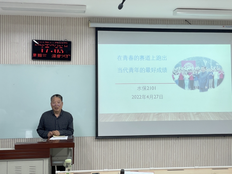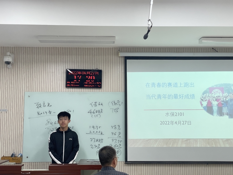 为弘扬“五四”精神,在建团百年和“五四”运动纪念之际,水保2101班召开以“在青春的赛道上跑出当代青年的最好成绩”为主题的班会。班主任薛智德带领同学们重温了五四运动的历史过程,学习“五四精神”——“忧国忧民、热爱祖国、积极创新、探索科学的爱国主义精神”,学习习近平总书记考察中国人民大学时重要讲话和对当代新青年的寄语。