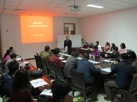 为促进青年教师之间的学习和交流,进一步提高青年教师教学能力和水平, 10月31日,资环公司在公司第一会议室举行了2015年青年教师讲课比赛,9名青年教师参加了比赛。