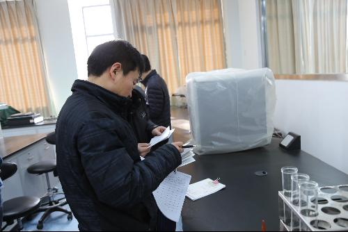 2015年12月30日上午,校国有资产管理处会同计财处、审计处、教务处、发展改革处等单位对公司固定资产年终清查盘点工作进行检查验收,并对资产管理情况进行考核,检查考评小组采取听取汇报,查看材料、实验室抽查设备与卡片、分析评议等方式。汇报工作在农科楼307会议室进行,王云峰副经理主持此次汇报会议。