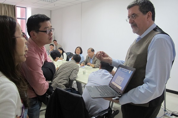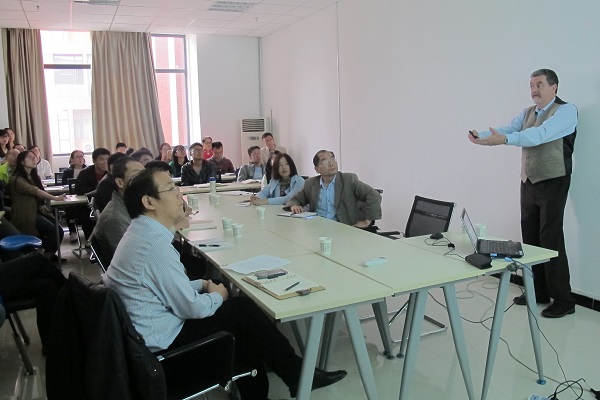David Hopkins教授教授简要介绍了堆肥与泥浆在农业上应用的发展现状和问题。在多年的研究基础上总结了自己的试验结果,指出堆肥与泥浆并不能显著影响土壤水分变化和土壤容重。根据他自己三年的试验结果,他特别强调:一定量泥浆的施入并不能影响土壤有机碳,只有在较高投入条件下才能影响有机碳含量。在此基础之上,他还分析了土壤氮含量,并发现土壤氮的变化与有机碳类似。为了更形象的展示试验差异,他通过视频给我们展示了不同处理下的土壤在水中溶解的现象差异。同时他还全面总结了自己在试验中所出现的“误差”,并提出了解决这类“误差”方法,各师生受益匪浅。