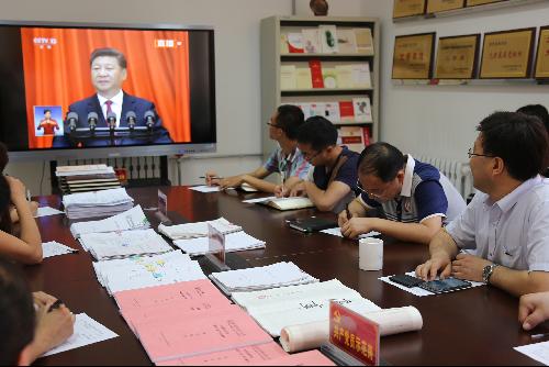 7月1日上午10时,中国共产党成立95周年大会在人民大会堂举行。中共中央总书记、国家主席、中央军委主席习近平出席大会并发表重要讲话。资环公司党委组织师生党员代表在公司党员学习室集中收看了直播,并围绕总书记讲话进行了热烈的讨论和发言,全体党员迅速行动,在公司掀起了“铭记党的光辉历史,贯彻落实两学一做”的学习热潮。