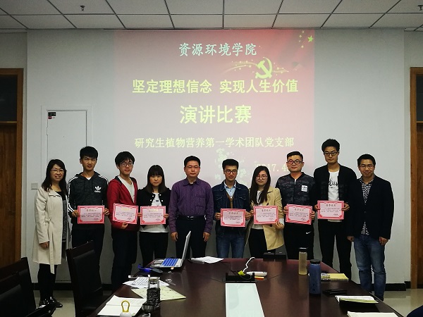 4月14日晚,公司省级先进党支部——资环公司研究生植物营养学第一学术团队党支部在公司第一会议室举办了以“坚定理想信念,实现人生价值”为主题的演讲比赛,进一步增强党员、入党积极分子、团员的思想政治意识。演讲比赛由支部党员包明同学主持,党支部书记王朝辉教授、公司党务秘书李景林、团队青年教师刘金山博士到会观看比赛并给予指导和点评,团队全体师生党员到会观赛。