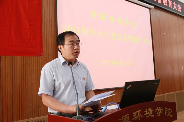 毕业季悄然来临,为了给毕业生党员留下一个难忘的组织生活,6月15日下午,资环公司在公司报告厅隆重举行2017届毕业生党员宣誓教育大会。2017届全体博士、硕士、本科毕业生党员、2017年接收的预备党员和预备期满转正党员、全体专兼职辅导员等近200名党员参加了宣誓大会。公司党委副书记田长河主持大会,党委书记闫德忠在会上对毕业生党员作深情寄语。