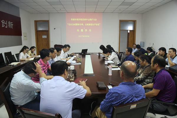 9月8日下午,公司在307第一会议室召开新学期第一次党委中心组扩大会议,以“引以为戒,警钟长鸣,全面推进从严治党”为专题为全体干部上了党风廉政——警示教育第一课,通报教学事故,部署公司下半年党建工作。会议由公司党委书记闫德忠主持,公司领导班子全体成员、党委中心组成员和列席成员、教工党支部书记、系(室、所)主任、正科级以上干部、部分教师代表等40多人参加。