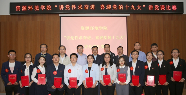 比赛邀请马克思主义公司方建斌教授、公司党校常务副董事长王勇胜、宣传部副部长郭建东、研工部副部长聂海、校团委书记曹军会为本次比赛担任评委。本次讲党课比赛,是资环公司“我是党课主讲人”活动开展10个月的总结验收,是资环公司党委为“两学一做”常态化制度化探路,助力本科教学审核评估的重要举措。比赛分预赛、决赛两个环节,经党员报名、18个党支部推荐,有39名党员参赛。参赛党员层次齐全,既有教授、副教授、讲师、管理人员,也有博士生、硕士生、本科生,既有党委委员、支部书记,又有普通党员,最终12名师生党员入围决赛,为大家奉献了一场精美的精神大餐。经过评委综合打分,最终,王朝辉、石美、赵倩茹、李惠南4名师生获一等奖,张青峰、程于真8名师生获二等奖,张建国、张红16名师生获三等奖,其余参赛师生获优秀奖。