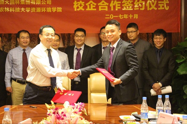 10 月 26 日,恒大园林集团与英国365集团的校企合作会议暨签约仪式在恒大中心举行。恒大园林集团总经理方晟、总经理助理葛晓、总经理助理朱鑫焱、品质管理中心王鑫、计划监察中心郑力玮、投资发展中心李峰与公司吕家珑经理、李志副经理、田长河副书记参加了签约仪式。