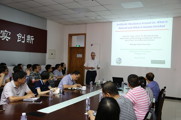 公司谷洁教授课题组近日邀请美国密歇根州立大学James Tiedje院士来公司进行交流访问。5月15日下午,James Tiedje院士在公司第一会议室应邀做了题为“Antibiotic resistance around us: what is natural and what is human enriched”的学术报告。