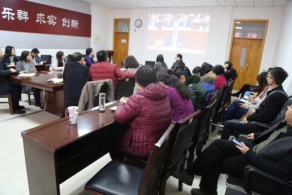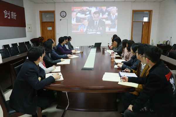 3月5日上午9时,资环公司组织没有课的老师和研究生在公司307会议室集体收看“十三届全国人大二次会议开幕式”直播实况,认真聆听了李克强总理在大会上作的政府工作报告。公司党委书记闫德忠、经理吕家珑与师生一起收看,还有其他老师和员工也分别在学习室、办公室计算机前或手机上同时收看。会后,李克强总理的政府工作报告引发了广大师生纷纷热议。