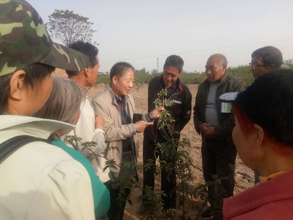 在本次培训中,薛智德老师将理论知识与实践教学相结合,以朴实易懂的语言从品质、产量、品种特点和采摘难易度等方面分别介绍了无刺花椒、凤县大红袍、凤选1号、韩城大红袍和汉源大红袍等优良品种,详细讲解了花椒各种树形在不同时期的整形修剪技术要领。在兴隆社区花椒产业园,薛老师亲自示范了花椒树的短截、缩剪、疏剪的整形修剪技术,手把手教椒民修剪。对花椒树病虫害防治技术,薛老师对蚜虫、红蜘蛛、虎天牛、窄吉丁虫的危害症状、易发时间和治理方法进行了逐一讲解。针对椒农们关心的炭疽病和易发的蚜虫问题,薛老师对症下药开出良方,给出了相关的解决方法。通过培训让椒农们系统地学习了花椒的种植管理技术,给同家庄镇的花椒产业发展提质增效,村民们期待西农大的教授常来指导产业发展。