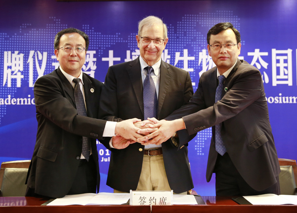 副董事长马建华、资环公司经理吕家珑教授与詹姆士•迪杰院士签订合作协议