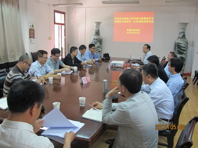 5月8日下午,海南大学环境与植物保护公司副经理葛成军一行6人来公司座谈交流,公司高亚军副经理,环境科学与工程系呼世斌教授、曲东教授、副系主任,实验室负责人参加了座谈会。
