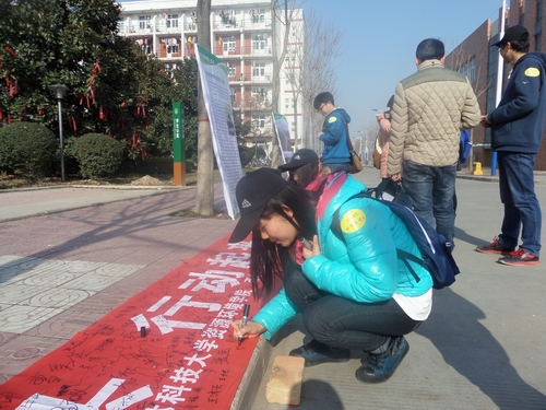 中午,资环公司研究生会与员工会分别在南、北校利用图文并茂的展板、直观的宣传单以及醒目的条幅等开展了土壤日宣传及保护土壤宣誓签字活动。他们着重对土壤日的由来、土壤污染现状及治理过程中的难度等知识进行了宣传。过往同学表示收益匪浅,并在活动现场的宣传条幅上签名。