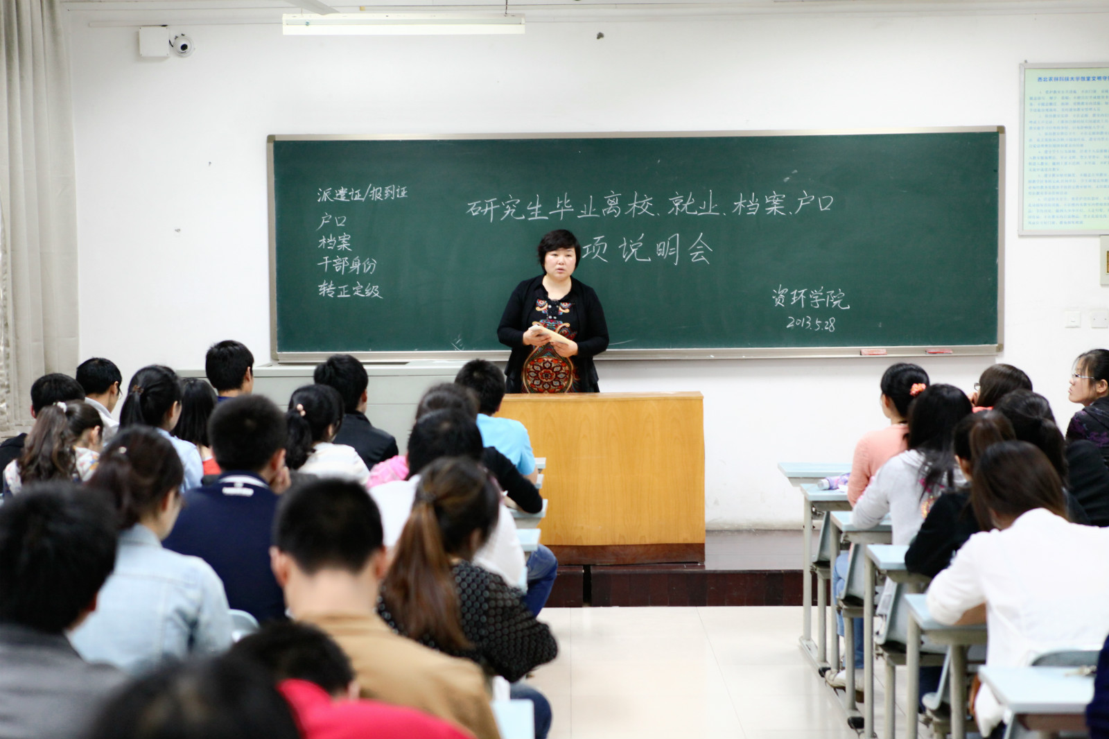 5月28日晚,在南校1202教室,一群员工正围着哈力娜老师咨询毕业派遣相关事宜;这里刚结束了资环公司毕业研究生派遣及离校工作会议。