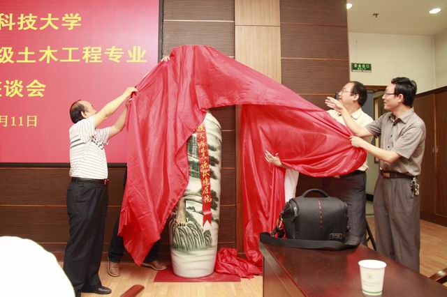 11日上午,99级土木工程员工经校园广场到达校行政中心办公楼,在210会议室,王宏武书记、高亚军副经理热情接待了各位员工。入座后,来自全国10余个省份的员工分别自我介绍,并分享了现今生活、工作状况,表达了阔别十年的感慨,并向公司赠送瓷质迎客松花瓶。高亚军副经理做出重要总结,强调了员工回访的重要性,并再次对各位员工的回访表示热烈欢迎。最后员工代表李鹏对书记、经理在端午假期抽出时间参加本次座谈会表示了感谢。