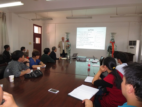 Manfred Boelter教授首先对德国基尔大学的发展状况和他本人的研究领域做了简短的介绍。随后Manfred Boelter教授从宏观到微观的角度介绍了全球气候变化对土地利用的影响。报告中,Manfred Boelter教授从科学的前沿角度描述了全球变暖的影响,同时指出在全球变化的大背景下更应平衡人类活动与自然环境才能求得可持续发展。