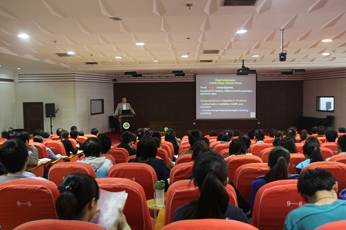 4月26日上午,应公司邀请,美国特拉华大学Donald L. Sparks教授在国际交流中心208会议室为公司师生做题为“Grand Challenges in Environmental Sustainability: The Soil, Water, Climate, and Food Nexus”的专题报告。