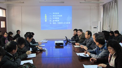 2012年秋期末考试将于2013年1月21日–24日分别在南北校区同时进行,公司此次参加考试的员工班共129次,涉及考试课程25门。为了加强期末考试的组织与管理,确保考试工作的顺利进行,1月18日下午,公司在公司第一会议室召开了2012年秋期末考试考前动员会,全体主考老师、监考老师、巡考人员参加了此次会议,会议由主管本科教学的高亚军副经理主持。
