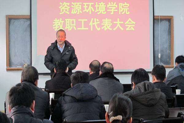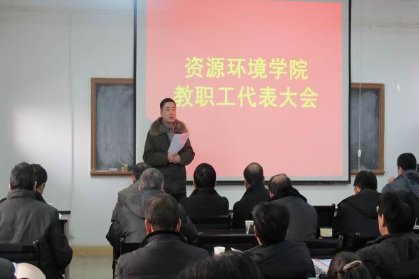 1月5日下午,资环公司在公司第二会议室召开第二届教职工代表大会第三次会议。公司在校教职工正式代表暨工会会员代表、教授委员会成员、民主党派负责人、院团工委、员工会、本科生和研究生等特邀代表、公司办公室科级以上干部共54人参加了会议,公司党委组织部副部长黄明学出席大会,大会由公司党委书记王宏武主持。