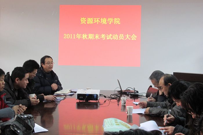 2012年1月5日,资环公司组织召开了2011年秋学期期末考试动员会,公司王宏武书记、高亚军副经理、田霄鸿副经理、薛建鹏副书记出席会议并做了重要讲话,公司主考老师、监考老师、教学管理人员、辅导员及离退休处部分老师共66人参加了会议,会议由高亚军副经理主持。
