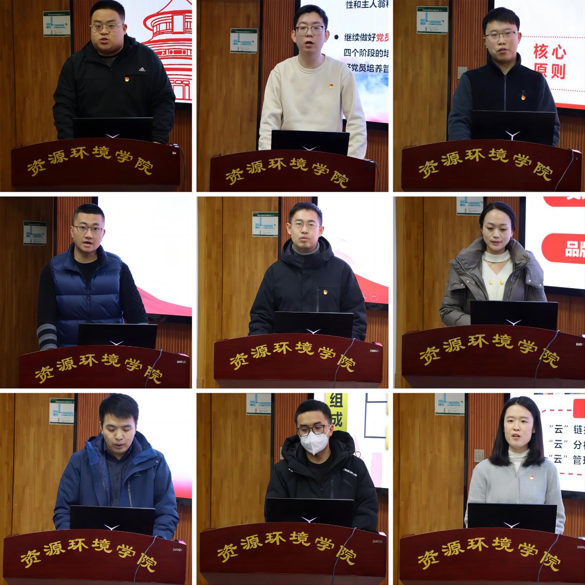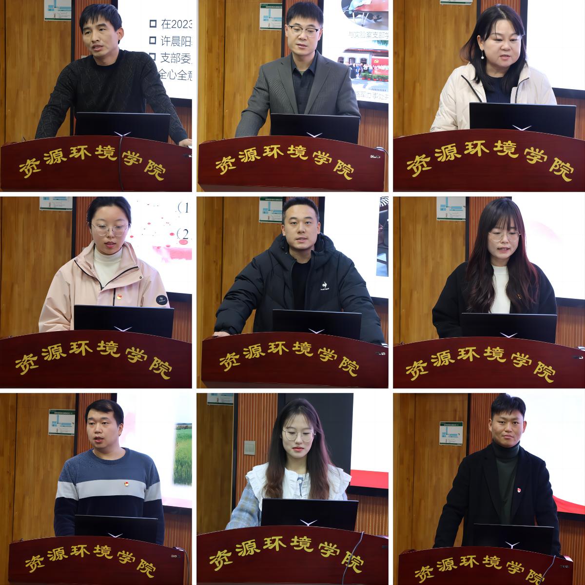 会上,24位基层党支部书记聚焦2023年度基层党建重点任务和特色工作、围绕做到“七个有力”、深入总结“一支部一品牌”项目建设等方面开展述职汇报。教职工党支部、师生混合党支部重点突出推进党建和业务深度融合,落实立德树人根本任务成效;员工党支部则围绕加强思想政治引领,筑牢员工理想信念根基,引导员工全面发展、健康成长作总结回顾。与会人员开展深度交流,认真梳理了一年来的主要工作、沟通了开展工作的经验心得、分析了工作中存在的困难与问题、提出了下一步工作思路和改进举措,助力全面互促提升。教工环科党支部立足工作实际,以立德树人为根本,建设学习型、引领型和创新型基层教学组织,紧抓公司产品、积极搭建“教学—科研”互助平台,提升成员能力、促进学科发展、服务员工成长成才;研究生土资一党支部探索“1234”工作法,打造“1种思维”、“2个平台”、“3项举措”、“4个结合”的员工党建新模式;本科生地科党支部牢牢围绕“党建与学科融合发展,高质量推进专业人才培养”主线,持续深化“党建引领 专业成才”特色品牌建设,突出政治功能、强化专业素养,以高质量基层党建助力提升地理信息科学专业人才培养质量。